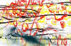 "Actions, states, one B+W video camera, the Paik Abe Colorizer, a video switcher. The two states, a b a b, I put my hand in the camera frame and saw a colored hand shifting. I moved my, the, hand, including back and forth, realizing or connecting to the visual and language potential of front hand and back hand. Giving it some veracity, the pace became about attempting to keep up with the position changes together with verbally reciting front hand back hand, co-coordinating from hand to mouth and mouth to hand."